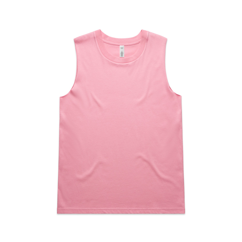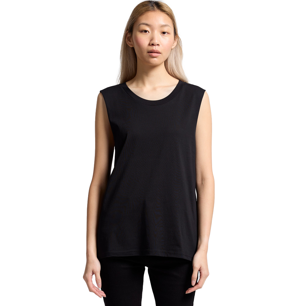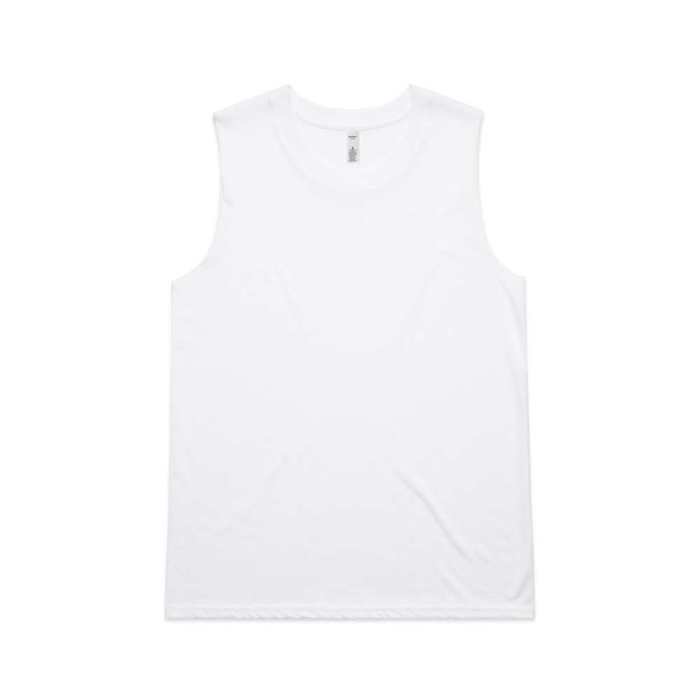 Sleeveless tank, raw armhole edges, neck ribbing, double needle hems, side seamed, preshrunk to minimise shrinkage