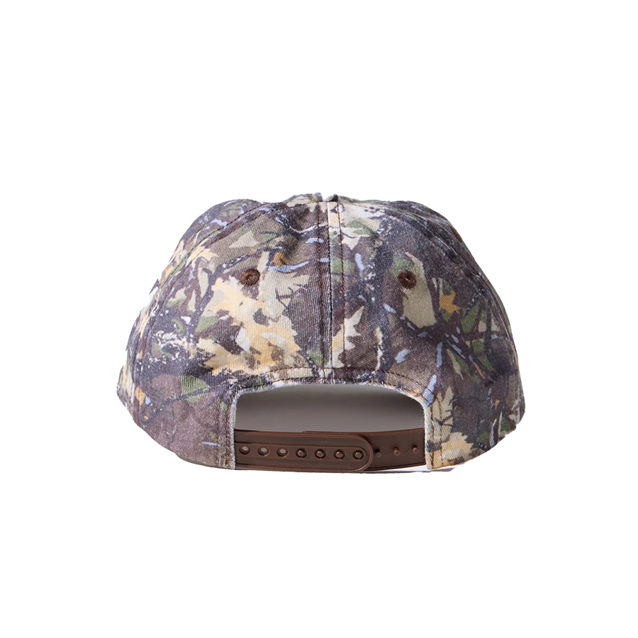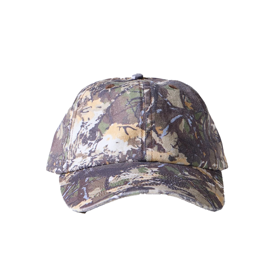 Design: 6-panel unstructured "dad" cap featuring a unique spray technique for the camo tree pattern and a hard, fully curved peak for classic styling.